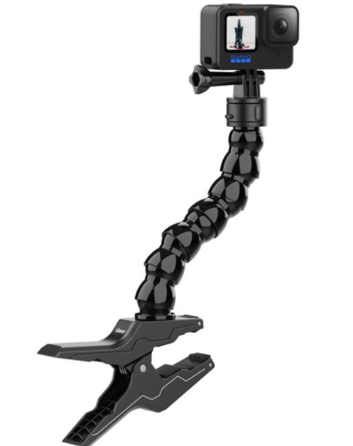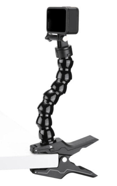 Ulanzi Go-Quick II funguje jako modulární flexibilní rameno s vysokým točivým momentem pro upevnění akční kamery a příslušenství. Je vybaveno pružinovou C-svorkou s rozsahem čelistí 5–50 mm a protiskluzovými silikonovými podložkami (tvrdost Shore A 60) pro bezpečné připevnění k okrajům, jako jsou rámečky monitorů nebo desky stolů. 189 mm dlouhé ocelové husí krky s práškovým nástřikem poskytují plný 360° kloub s pamětí polohy (třecí moment 0,5–1 Nm) a při vysunutí podporují maximální výšku až 328 mm, zatímco integrovaný 3-kolíkový držák využívá magnetické rychloupínání (neodym N35, 2 kg smyková síla) kompatibilní s řadami GoPro Hero, DJI Osmo Action 5 Pro a Insta360 GO 3S bez adaptérů. Dvojité závity 1/4"-20 UNC (jeden na základně svorky, jeden na držáku) umožňují řetězení ramen nebo připevnění LED světel/mikrofonů (celkové rozložení zatížení 2 kg, vertikálně 1,5 kg). Je vyroben z matně černé oceli s práškovým nástřikem (odolné proti korozi, odolné proti stříkající vodě IP54) a ABS plastu (odolné proti nárazům 5 J), složí se na rozměry 200 × 70 × 45 mm pro uložení do 15" pouzdra na notebook, funguje v prostředí s teplotou od –10 °C do +60 °C a váží 210 g, takže je snadno přenosný. Rameno je ideální pro snímání nad stolem a lze jej zajistit pomocí integrovaného knoflíku (točivý moment 0,8 Nm), aby se zabránilo posunutí pod zatížením.