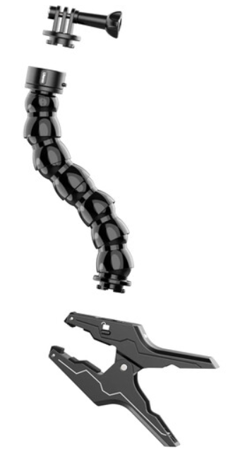 Ulanzi Go-Quick II je 210 g lehké flexibilní rameno s pružinovou svorkou 5–50 mm, 189 mm 360° ocelovým husím krkem, univerzálním 3-bodovým držákem pro akční kamery (GoPro/DJI/Insta360), dva závity 1/4"-20, protiskluzové silikonové podložky a nosnost 2 kg – umožňuje stabilní a nastavitelné umístění akčních kamer, mikrofonů nebo světel v kompaktních sestavách.