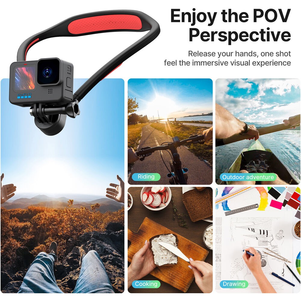Zachyťte působivé záběry z přirozené perspektivy na úrovni ramen pomocí magnetického držáku na krk Ulanzi Go-Quick II. Tento držák, navržený pro akční kamery, kamery GoPro a smartphony, je vybaven ohebným měkkým silikonovým držákem na krk, který je pro větší odolnost a dlouhodobé pohodlí vyztužen hliníkem. Jeho ergonomické zakřivení se přizpůsobí krku a ramenům, což umožňuje dlouhodobé nošení bez nepohodlí.