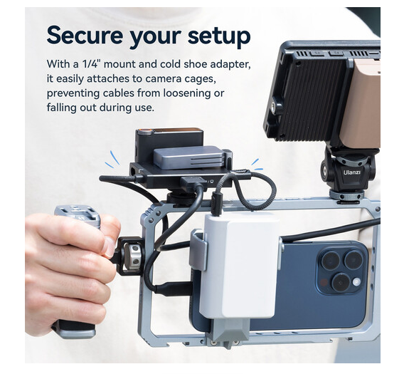 Ulanzi M033 H1 4-v-1 USB-C Media Hub je univerzální řešení pro připojení určené pro profesionální videoprodukci, živé vysílání a rychlý přenos dat. Je vybaven dvěma porty USB-C 3.2 Gen 2, jedním portem HDMI 2.0, portem USB-C Power Delivery a 1/4"-20 samičím závitem s adaptérem pro upevnění na studené patky, což umožňuje plynulé připojení k fotoaparátům, monitorům a dalším zařízením.
