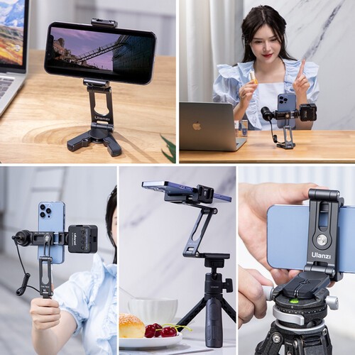 Stativ HP004 je vyroben z odolné hliníkové slitiny s polstrovanými úchyty a chrání váš telefon před nárazy. Jeho nastavitelné klouby – 310° ve spodní části a 270° v horní části – umožňují přesné polohování a otočení telefonu o 360° zajišťuje, že můžete pořizovat záběry z jakéhokoli úhlu. Pro rozšíření funkčnosti obsahuje držák slot Arca, montážní závit 1/4"-20 a dvojité studené patky pro mikrofony, LED světla nebo jiné příslušenství. Kompaktní, lehký a vysoce přizpůsobivý držák HP004 je ideální pro tvůrce, kteří potřebují přenosný, multifunkční držák pro smartphone.