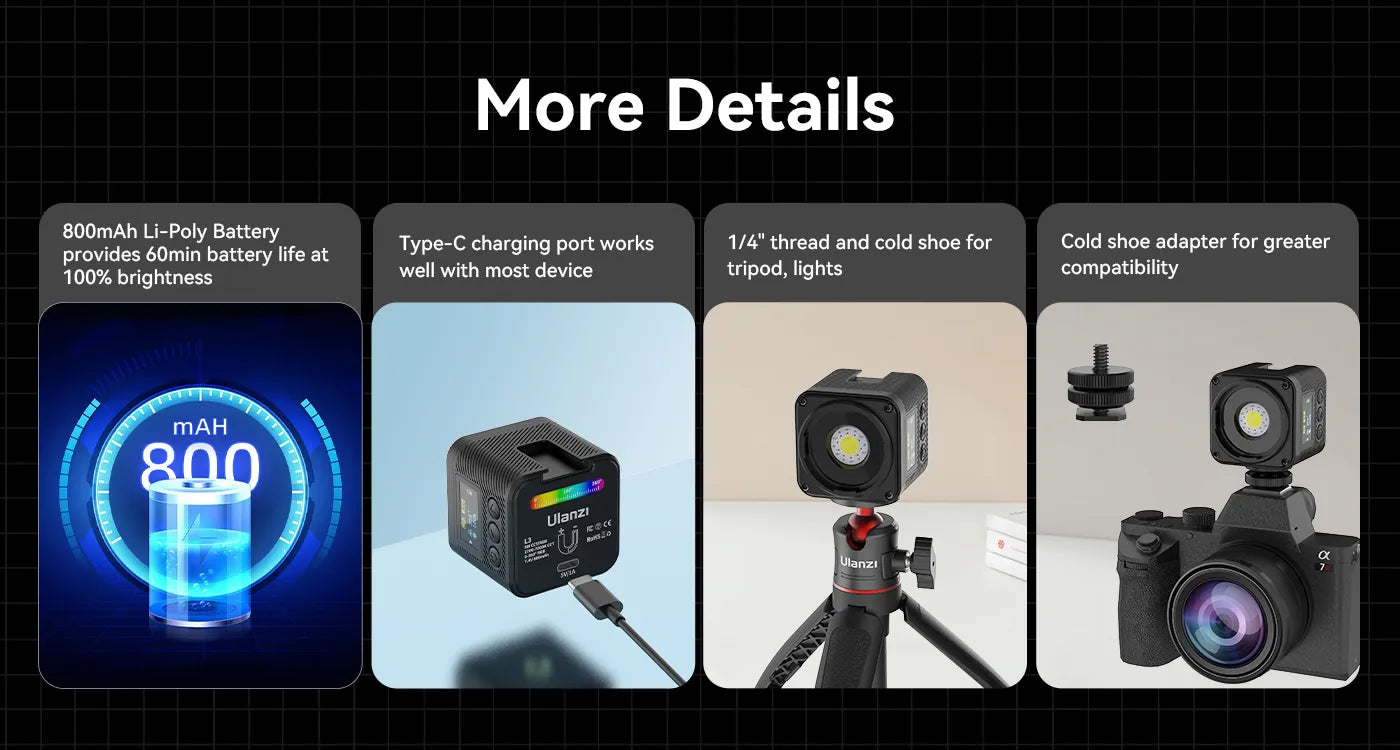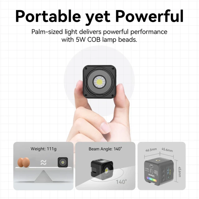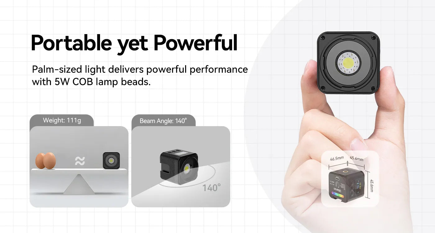 Všestranné osvětlení pro každou situaci. Přenosné světlo o velikosti dlaně poskytuje výkonný výkon díky 5W COB lampám. 20FX pro neomezenou kreativitu.