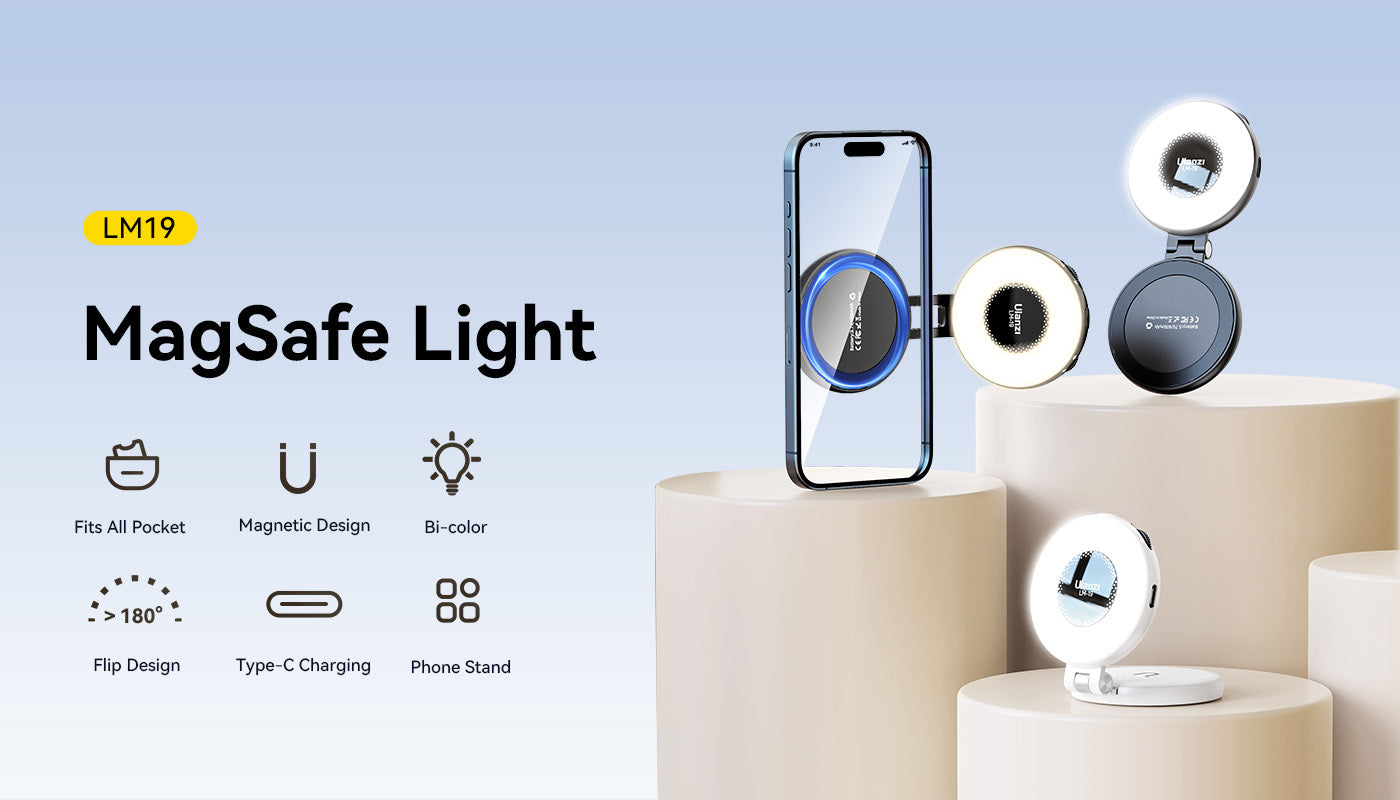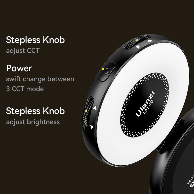 - Otočný design: Nastavte své zařízení do libovolného úhlu díky flexibilnímu otočnému designu a rozsahu otočení více než 180°. Otočný kloub zajišťuje, že světlo zůstane zaměřeno na vás a poskytuje dokonalé osvětlení během živých přenosů, vlogů, videohovorů a selfie.