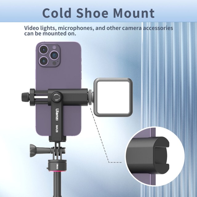 Držák na telefon Ulanzi MA28 GoPro Mount umožňuje bezpečně připevnit smartphone na jakýkoli držák akční kamery typu GoPro. Nabízí otočení o 360° a silný upínací mechanismus pro stabilní a flexibilní mobilní natáčení.