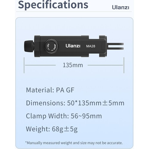 Držák na telefon Ulanzi MA28 GoPro Mount je kompaktní a praktické řešení pro upevnění smartphonu na držáky akčních kamer typu GoPro, což je ideální pro vlogování, nahrávání POV, živé vysílání a tvorbu mobilního obsahu. Je navržen tak, aby se do něj vešly smartphony o šířce od 2,2 do 3,7 palce, a poskytuje širokou kompatibilitu s většinou moderních telefonů.