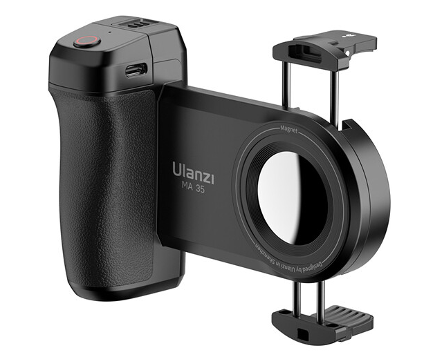 MA35, navržený pro tvůrce, obsahuje držák pro připevnění mikrofonů nebo světel, 1/4"-20 vnitřní závit pro stativy nebo selfie tyče a vestavěné selfie zrcátko pro přesné rámování. Tento kompaktní a kapesní USB-C dobíjecí grip je kompatibilní se zařízeními iOS i Android, což z něj činí výkonné mobilní příslušenství pro fotografování typu „vše v jednom“.