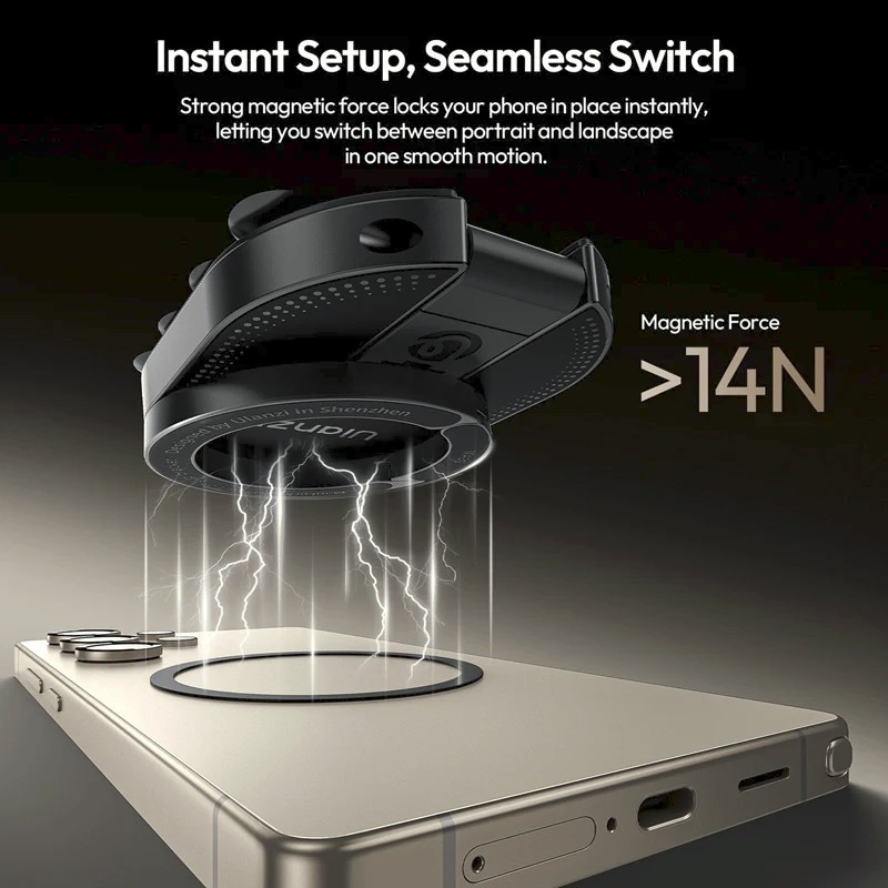 Magnetický úchyt bezpečně drží vaše zařízení na kovových površích a umožňuje plynulé přepínání mezi režimy na výšku a na šířku. 360° nastavitelný kloub poskytuje plnou volnost otáčení, takže můžete telefon umístit v libovolném úhlu bez prohýbání. MA39 je kompatibilní s telefony do 300 g, včetně těch s vestavěným MagSafe (nebo s magnetickým pouzdrem/kroužkem), a je ideální pro fotografování na cestách, stolní sestavy nebo kreativní řešení upevnění. Odolný, lehký a snadno použitelný, je to dokonalý víceúčelový držák pro váš smartphone.