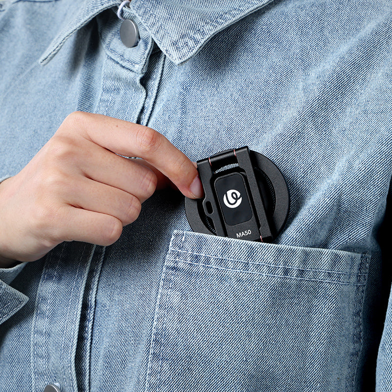 Tenký jako váš telefon. S tloušťkou pouhých 12 mm ve složeném stavu – přibližně stejnou jako smartphone – se MA50 snadno vejde do kapsy. Všestranné možnosti přenášení: Úchyt na batoh