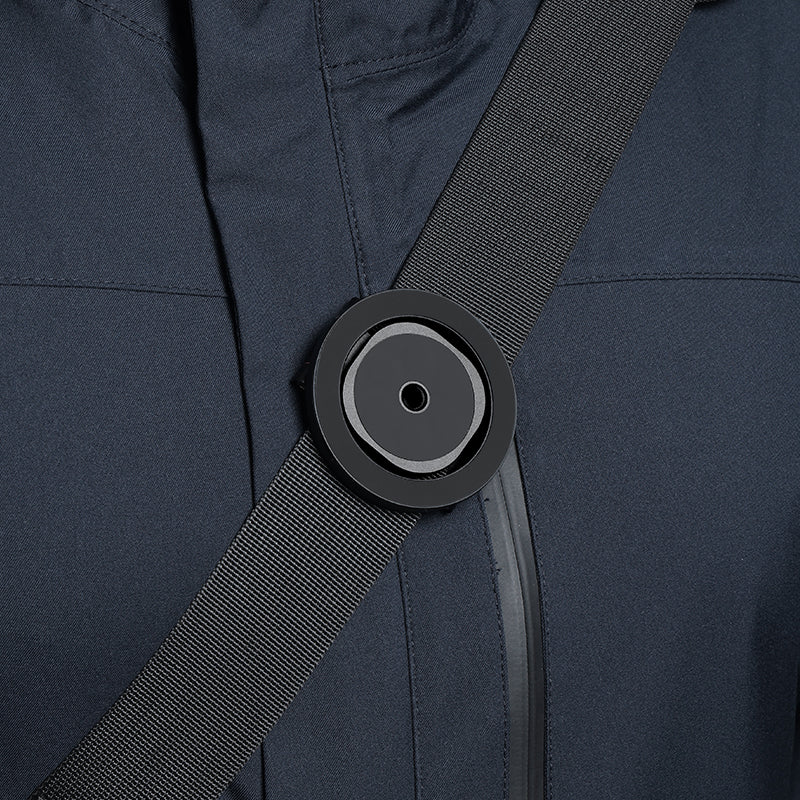 Hodí se na ramenní popruhy o šířce až 30 mm a tloušťce 1,5 mm. Připevnění šňůrky. Dva typy otvorů pro šňůrku umožňují připevnění různých velikostí popruhů