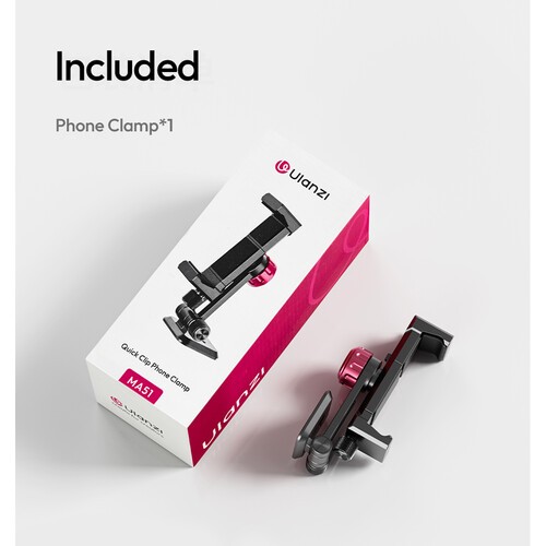 Ulanzi MA51 QuickClip Phone Clamp je univerzální držák na telefon s rychloupínací základnou UKA, naklápěním o 180°, otáčením o 360° a dvěma držáky pro příslušenství, kompatibilní se smartphony o šířce 2,6–3,5".