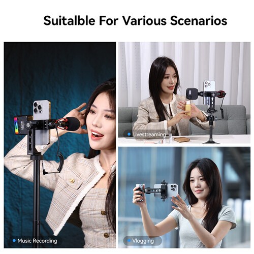 Díky několika upevňovacím bodům – včetně studené patky, závitů 1/4"-20, závitu 3/8"-16 a polohovacího otvoru ARRI – funguje MA53 jako kompaktní mobilní rig hub pro mikrofony, LED světla, monitory nebo bezdrátové přijímače. Ať už vlogujete, natáčíte obsah pro sociální sítě nebo živě streamujete, MA53 je výkonné a univerzální řešení pro upevnění smartphonu.