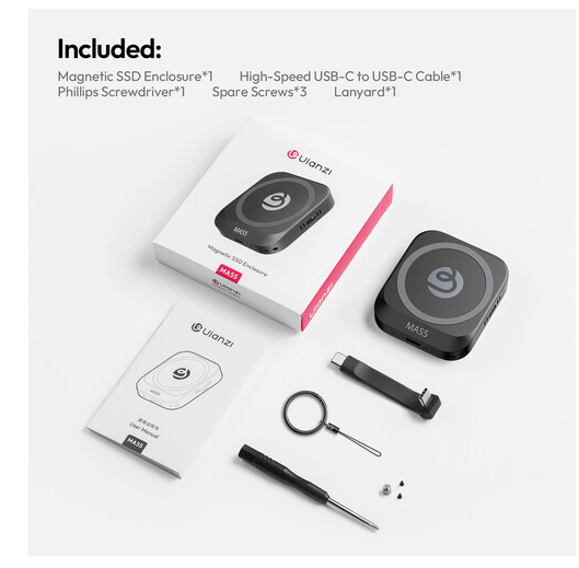 Magnetický SSD kryt Ulanzi MA55 je univerzální vysokorychlostní úložné řešení určené pro profesionály a tvůrce obsahu. Podporuje SSD disky NVMe M.2 (až 2 TB) a nabízí plynulé připojení pomocí portů USB-C 3.2 Gen 2 a USB-C PD 3.0. Díky podpoře nahrávání videa 4K ProRes, integrovanému chladicímu ventilátoru a magnetickému upevnění pro snadnou instalaci je tento kryt ideální pro mobilní nahrávání a vysokorychlostní přenos dat.