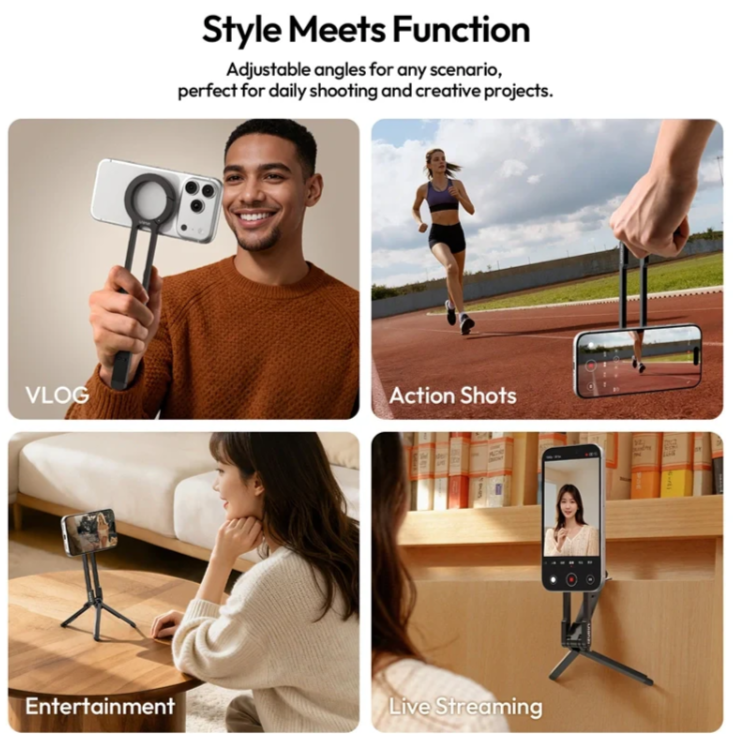 Stativ na telefon Ulanzi MA57 MagSafe s karabinou S007 je určen pro tvůrce, kteří chtějí plynule přecházet mezi režimy držení v ruce, stativu, stojanu a mantis. Jeho nastavitelné úhly zajišťují dokonalé kompozice pro vlogy, akční záběry, zábavní obsah i živé vysílání. Patentovaná karabina s rychloupínáním se bezpečně připevní k taškám, takže máte stativ po ruce i na cestách, zatímco skrytý háček typu mantis umožňuje pořizovat záběry z vysokého úhlu nad hlavou na stabilních površích. Díky oboustrannému systému MagSafe přední strana bezpečně drží zařízení iPhone 12–17 a zadní strana podporuje magnetické příslušenství pro vylepšené kreativní sestavy. Je lehký a kompaktní, váží pouhých 68 g a snadno se vejde do kapsy. Třínohá základna s protiskluzovými silikonovými podložkami zajišťuje pevnou stabilitu pro natáčení bez otřesů.