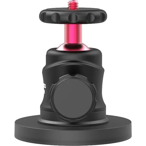 Držák je vybaven pogumovanou magnetickou základnou, která zajišťuje pevné uchycení a zároveň chrání povrchy před poškrábáním. Integrovaná kulová hlava umožňuje otáčení o 360° a obsahuje 90° zářez pro snadné vertikální natáčení. Montážní šroub 1/4"-20 zajišťuje kompatibilitu s širokou škálou příslušenství a přiložený adaptér typu GoPro umožňuje připevnit akční kameru ihned po vybalení.