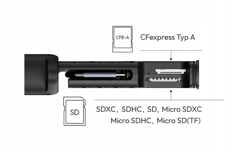Podporuje karty CFexpress typu A, SD, microSD (TF) a SIM