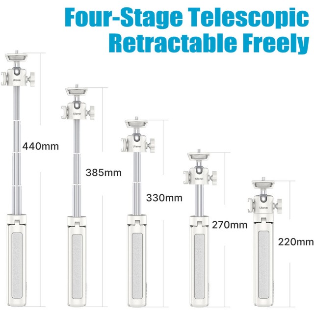 Roztažitelný stolní stativ Ulanzi MT-42 je stylové a přenosné řešení pro tvůrce, kteří potřebují kompaktní a multifunkční zařízení. MT-42 je vyroben z odolného hliníku, váží pouhých 170 g a unese zařízení o hmotnosti až 2 kg. Lze jej vysunout do maximální výšky 44 cm pro stolní snímky nebo videozáznamy a složit na 22 cm pro snadnou přepravu a skladování.
