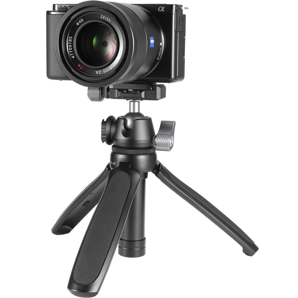 Stolní stativ Ulanzi MT-47 Mini Arca-Swiss Quick Shoe je univerzální a odolné řešení pro tvůrce obsahu, fotografy a kameramany, kteří ocení rychlost a flexibilitu. Tento mini stativ je vyroben z hliníku a nabízí vynikající tuhost, přičemž zůstává lehký s hmotností pouhých 335 g. Navzdory své kompaktní velikosti unese zařízení o hmotnosti až 2 kg, takže je vhodný pro akční kamery, kompaktní fotoaparáty, bezzrcadlovky, webové kamery a malé videokamery. Pomocí volitelného adaptéru lze připevnit i smartphony.