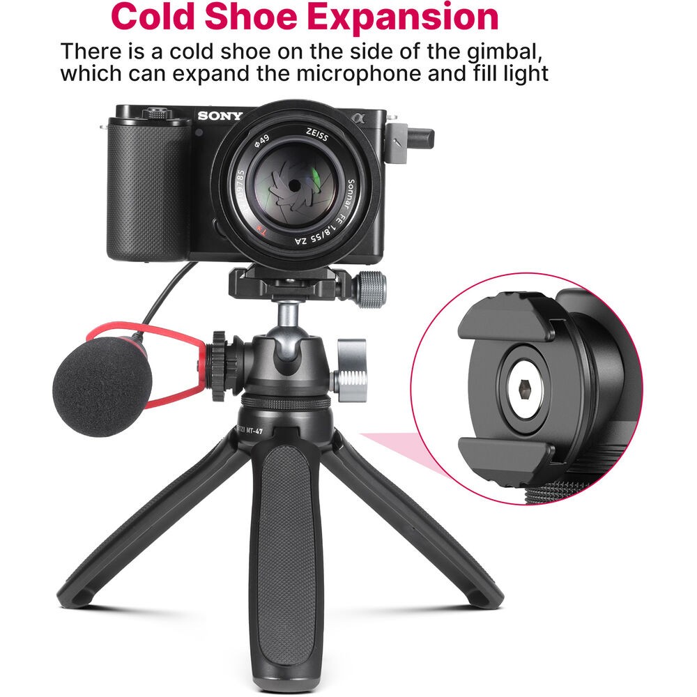 Mini stolní stativ Ulanzi MT-47 je kompaktní, celokovová podpora určená pro tvůrce, kteří potřebují rychlé nastavení, přenosnost a profesionální pohodlí rychlého uvolnění. Díky tenké kulové hlavě typu Arca-Swiss s rychlým uvolněním, otočné studené patce a skládací konstrukci, která slouží také jako rukojeť fotoaparátu nebo selfie tyč, je ideální pro vlogování, streamování a cestovní fotografování.