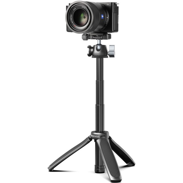 Nohy stativu se rozkládají a poskytují stabilní oporu na stole díky gumovým koncovkám, které zlepšují přilnavost a chrání povrchy. Ve složeném stavu tvoří nohy ergonomickou rukojeť s protiskluzovým povrchem, díky čemuž lze MT-47 pohodlně používat jako rukojeť pro vlogování nebo selfie tyč. S maximální pracovní výškou 37,2 cm je ideální pro stolní sestavy, snímky z nízkého úhlu nebo ruční fotografování.