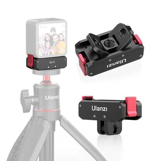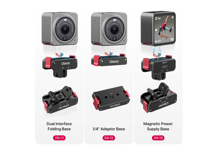 Skládací základna Ulanzi 2843A s dvojitým rozhraním nabízí univerzální a lehké řešení pro upevnění kamery DJI Action 2. Je vyrobena z odolné hliníkové slitiny a disponuje magnetickým upevněním s klipy a skládacími částmi, které odhalují závit 1/4"-20 pro stativy nebo držáky typu GoPro, což je ideální pro stabilní a flexibilní nastavení.