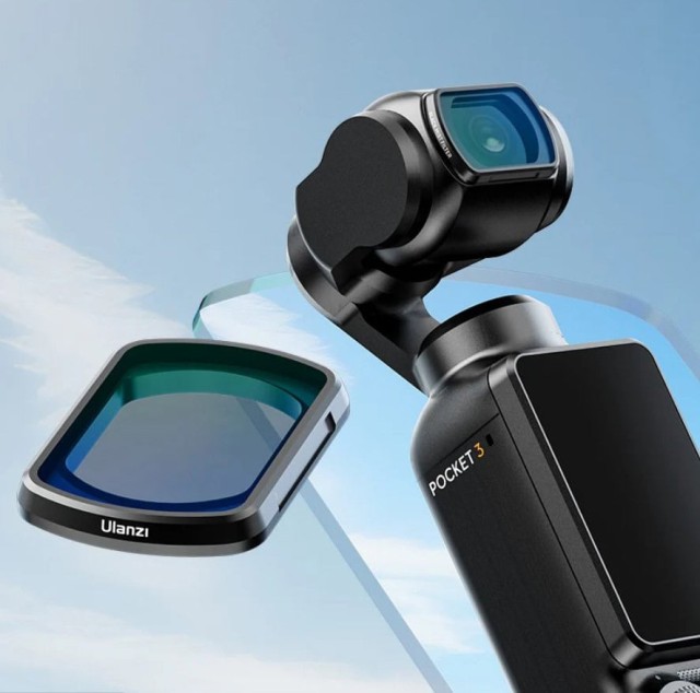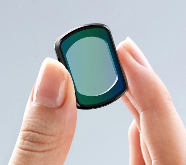 Filtr je vyroben z optického skla HD s dvojitou nanovrstvou, je vodotěsný, odolný proti poškrábání a snadno se čistí. Lehký rám z hliníkové slitiny zajišťuje odolnost a váží pouze 1,2 g, takže neovlivňuje kalibraci gimbalu Pocket 3. Magnetický upevňovací systém umožňuje rychlé připevnění a sejmutí, takže lze filtry snadno vyměnit za chodu.
