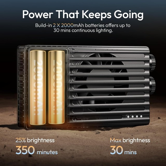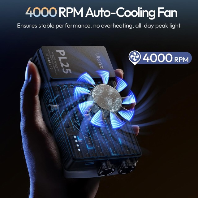 PL25 je vybaven vestavěnou dobíjecí baterií s kapacitou 2000 mAh, která podporuje až 350 minut provozu při 6 W nebo 30 minut při maximálním jasu. Světlo je také vybaveno rychlým nabíjením USB-C PD, které umožňuje plné dobití za pouhých 120 minut, takže můžete zůstat napájeni během svateb, rozhovorů, produktové fotografie nebo nepřetržitých živých přenosů.