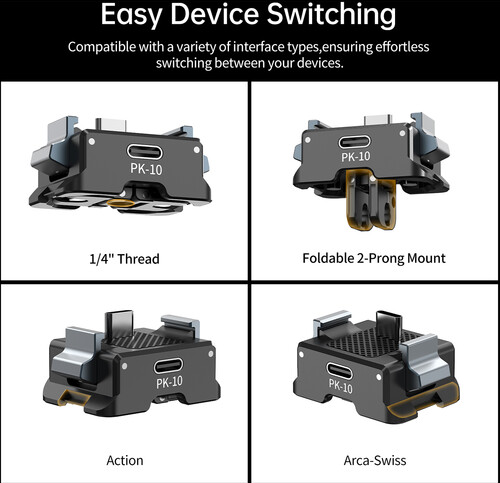 Ulanzi PK-10 USB-C základová deska pro DJI Osmo Pocket 3 – 2kolíkový držák z hliníkové slitiny s průchozím nabíjecím portem, magnetickým rychlým přepínačem a ultralehkou hmotností 34 g pro plynulé natáčení na cestách.
