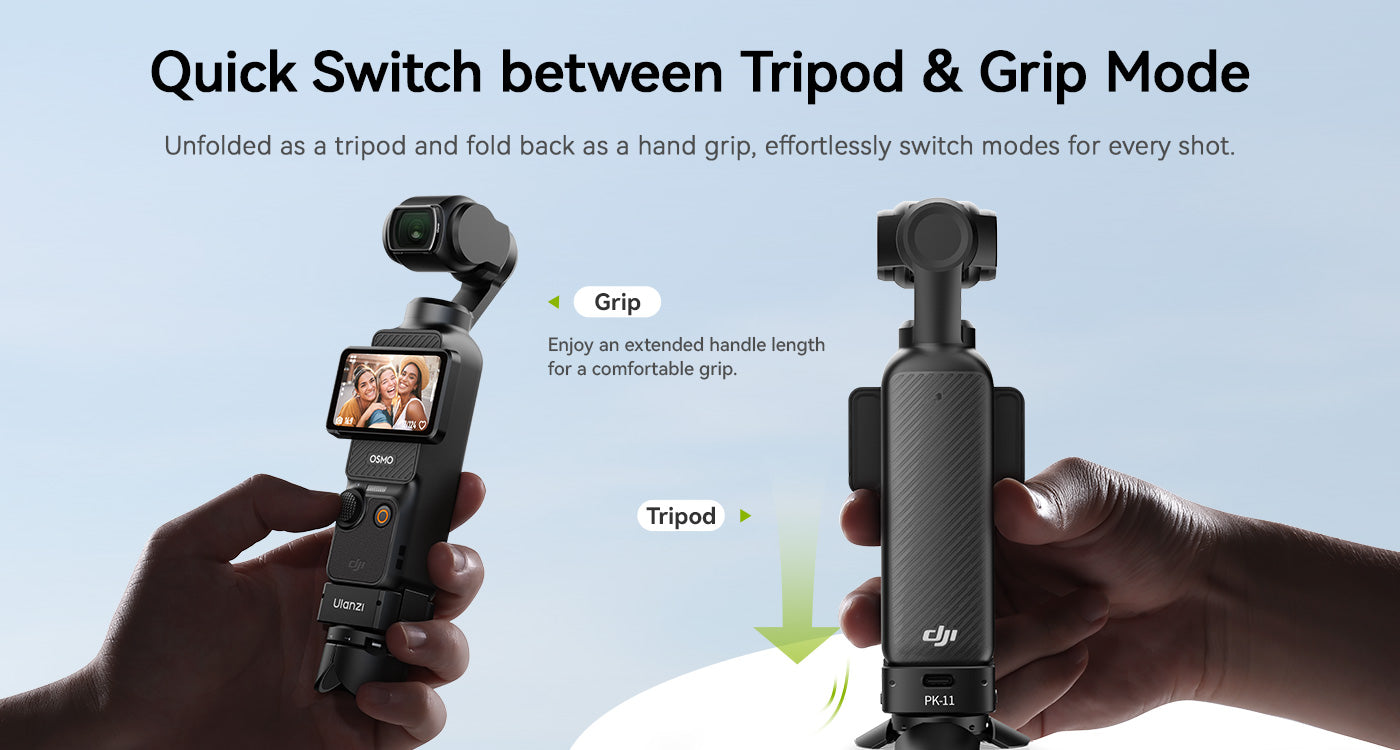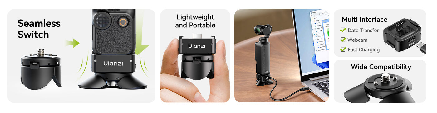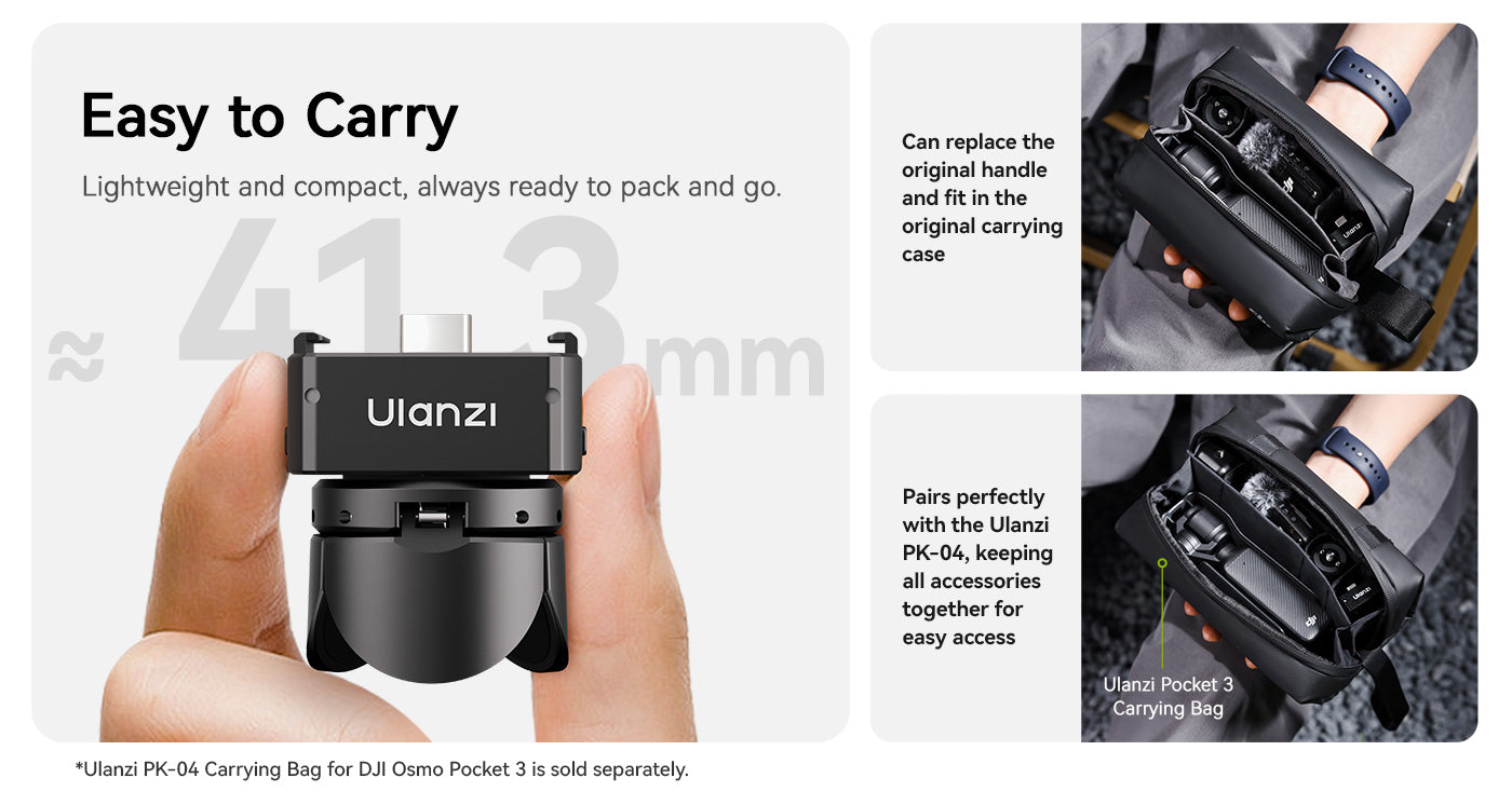 Mini stativ Ulanzi Pocket3 je dokonalým kompaktním společníkem pro uživatele DJI Osmo Pocket 3, kteří hledají stabilitu a flexibilitu na cestách. Díky lehké konstrukci a multifunkčnosti lze snadno přepínat mezi režimy stativu a ručního držení. Integrovaný šroub 1/4" a odnímatelný polohovací kolík Arri zajišťují širokou kompatibilitu s příslušenstvím, zatímco plně funkční datový port typu C podporuje nabíjení během používání. Tento mini stativ, ideální pro cestování, vlogování a stolní fotografování, nabízí profesionální výkon v kapesním balení