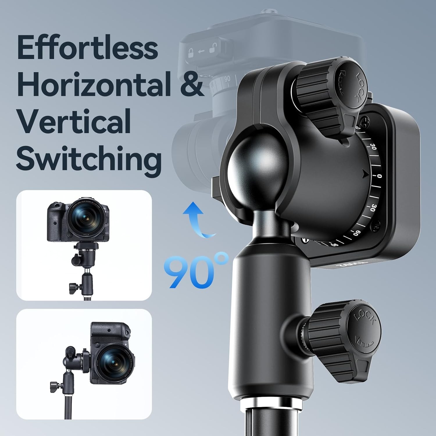 Díky obrácené konstrukci kulové hlavy umožňuje TH02 plynulou 360° panoramatickou rotaci a přesné polohování v různých úhlech. Vestavěná drážka ve tvaru písmene U umožňuje snadné přepínání mezi horizontální a vertikální (portrétní) orientací s plným nakloněním o 90°, což je ideální pro fotografování, videografii, živé vysílání a snímání z nadhlavní pozice.