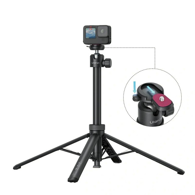 Ulanzi TT24 Cka Quick-Release Selfie Stick je univerzální zařízení 2 v 1, které funguje jako přenosná selfie tyč i podlahový stativ. Je vybaveno univerzální kulovou hlavou, umožňuje otáčení o 360° a je kompatibilní s rychlouzávěrem pro telefony, akční kamery a kompaktní zařízení do hmotnosti 1 kg.