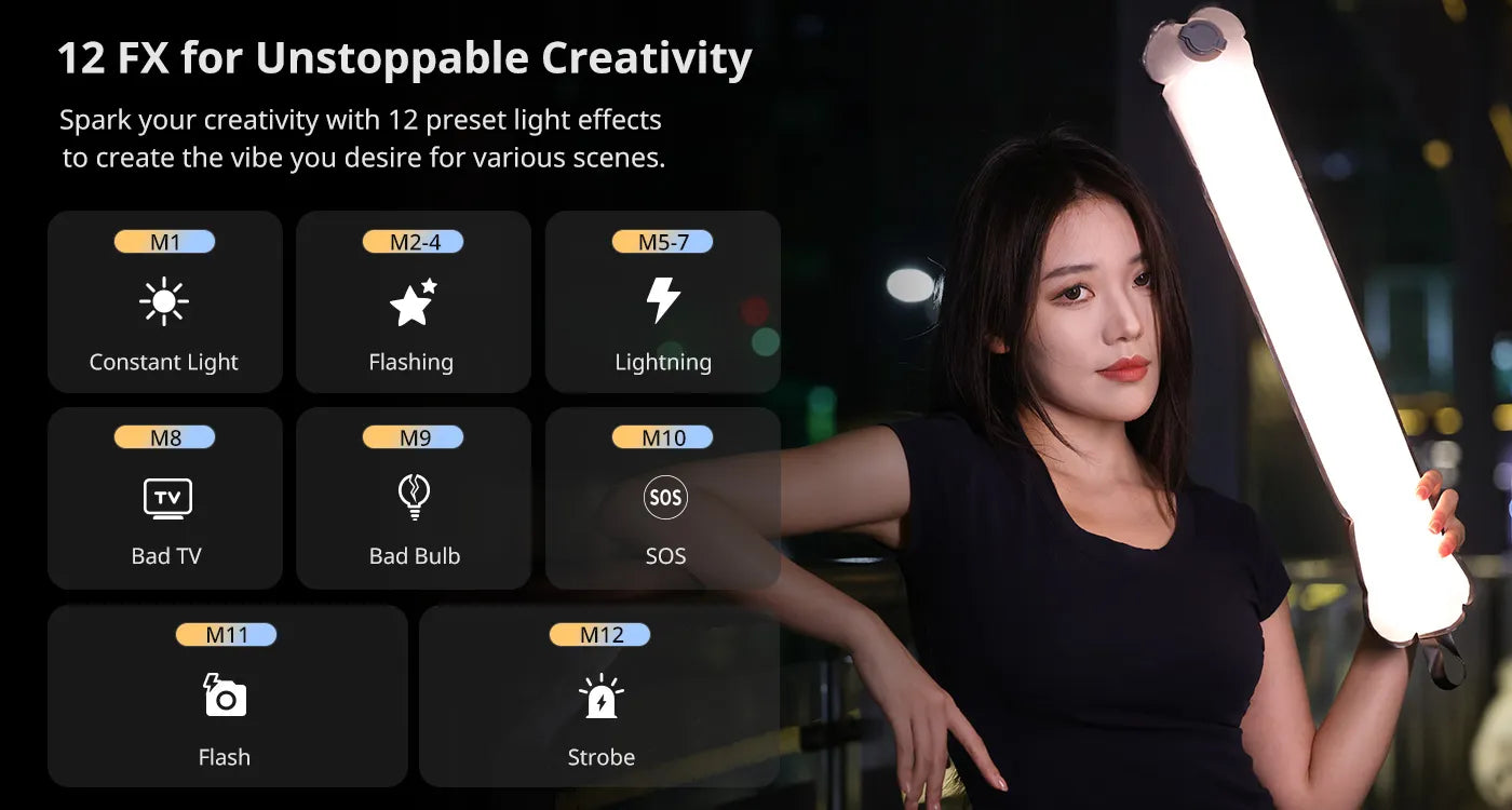 Přenosné vzduchové trubkové světlo Ulanzi UA12/UA20 se snadno nafukuje a vyfukuje a je vhodné pro různé situace. Nastavte barevnou teplotu od 2700 K do 6500 K podle svých potřeb při fotografování. Rozšiřte svou kreativitu pomocí 12 přednastavených světelných efektů. Magnetický držák a 1/4" stojan zajišťují univerzální nastavení a šňůrka umožňuje snadné zavěšení. Napájí se 18Wh baterií, podporuje rychlé nabíjení za 2 hodiny a poskytuje 75 minut (UA12) nebo 55 minut (UA20) provozu při plném jasu. Je ideální pro použití na cestách, po vyfouknutí se dá kompaktně složit.