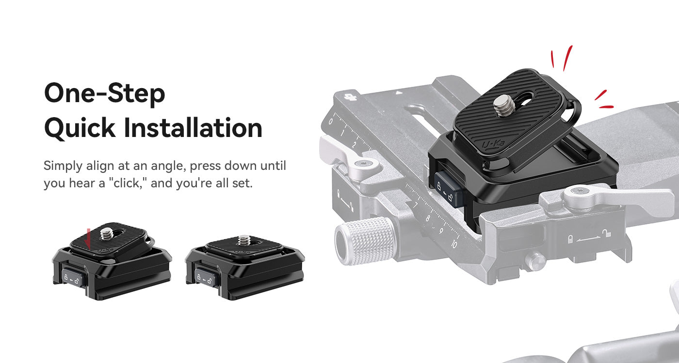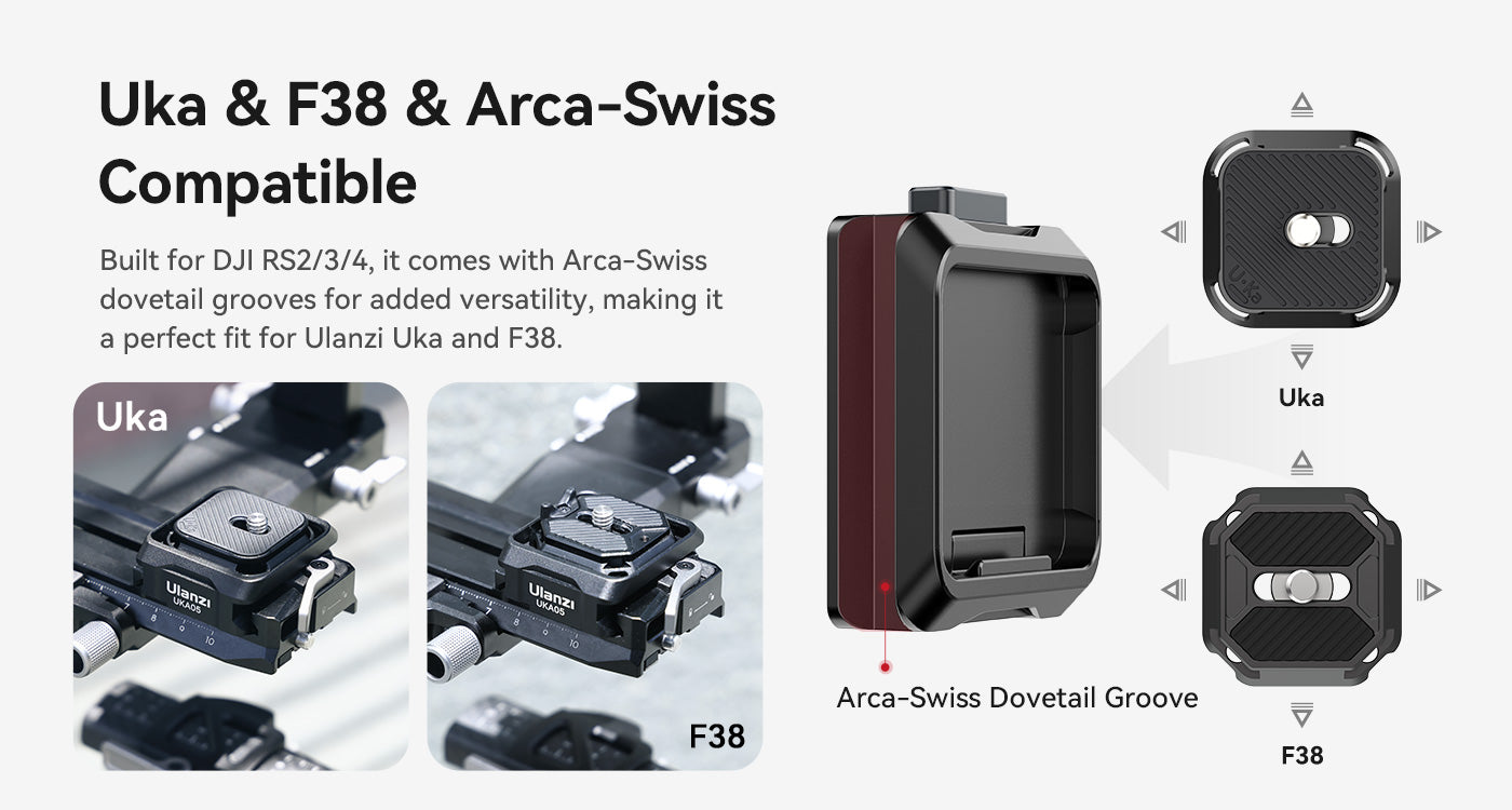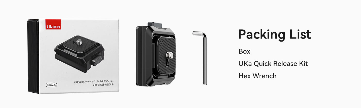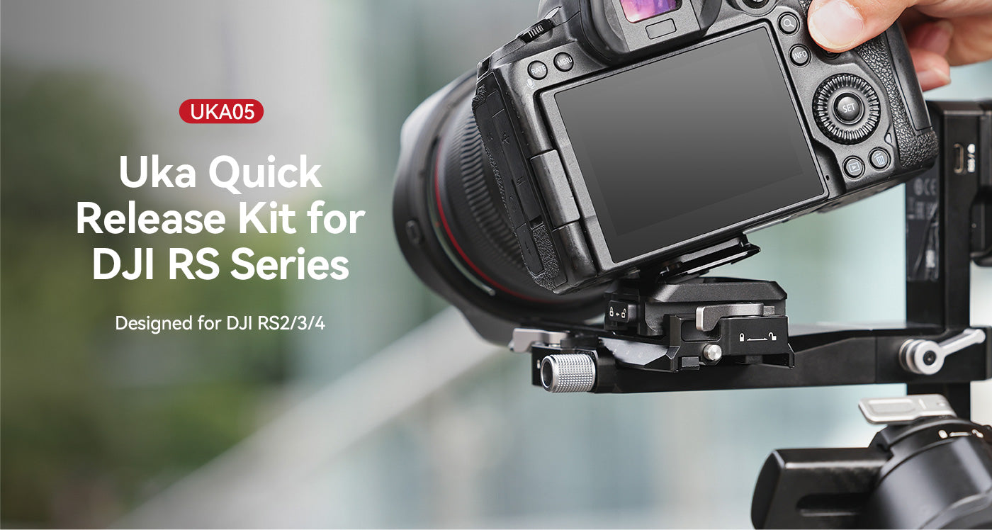 Sada Ulanzi UKA05 Uka Quick Release Kit pro DJI RS2/3/4 je dokonalým vylepšením pro rychlé a bezpečné upevnění kamery. Je kompatibilní s Arca-Swiss, Uka a F38, nabízí instalaci v jednom kroku, protiskluzové gumové podložky a bezpečnostní zámek, který zabraňuje náhodnému uvolnění. Díky kompaktní konstrukci a designu připravenému pro připevnění šňůrky je ideální pro tvůrce na cestách a je nepostradatelným doplňkem pro uživatele stabilizátorů DJI RS.