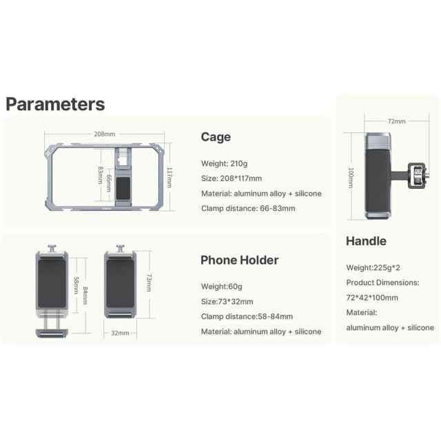 Třístranná protiskluzová silikonová výstelka chrání váš telefon a udržuje jej v bezpečí, zatímco robustní konstrukce z hliníkové slitiny zajišťuje odolnost bez přidání nadměrné hmotnosti. Ať už vlogujete, streamujete živě nebo vytváříte filmový mobilní obsah, tento rig poskytuje stabilitu a rozšiřitelnost, které vylepší váš pracovní postup.