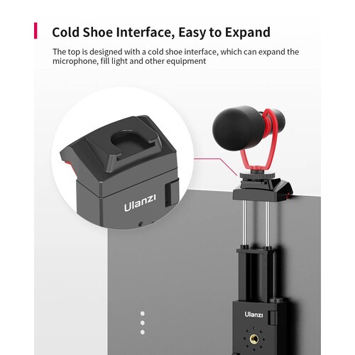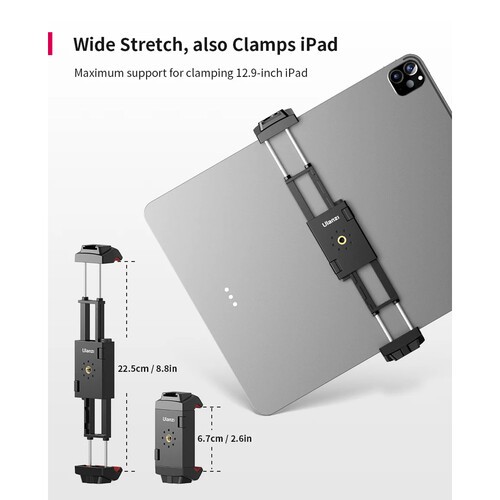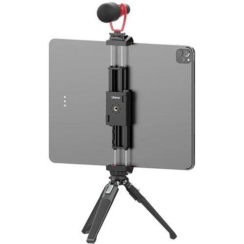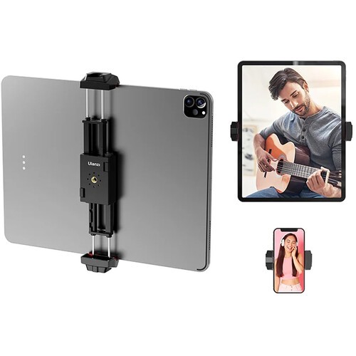 Stativový držák ST-29 od společnosti Ulanzi, určený pro vlogery, streamery, tvůrce kreativního obsahu a další, je vybaven jedním držákem typu cold shoe, který lze použít pro světlo, mikrofon nebo jiné příslušenství, zatímco dva otvory se závitem 1/4"-20 umožňují připevnění ke stativu nebo selfie tyči. ST-29 je kompatibilní s většinou smartphonů a tabletů, včetně 12,9" iPadu Pro, a je vhodný pro zařízení o šířce od 2,63 do 8,85" a lze jej použít v horizontální i vertikální orientaci. Ve spodní části je slot, do kterého lze zasunout nabíjecí kabel, takže můžete zařízení nabíjet, i když je připevněno v držáku ST-29. Součástí balení jsou také silikonové podložky, které chrání před poškrábáním, a houbová podložka, která zabraňuje klouzání zařízení.