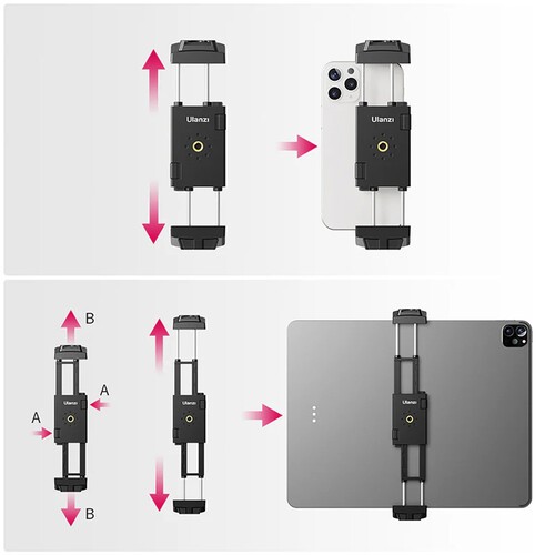 Bezpečně připevněte svůj telefon nebo tablet pomocí univerzálního stativového držáku ULANZI s katalogovým číslem Ulanzi2809. Toto univerzální příslušenství lze připevnit na jakýkoli standardní stativ a umožňuje stabilní fotografování a natáčení videí bez použití rukou i videohovory. Je kompatibilní s celou řadou zařízení a je ideální pro tvůrce, cestovatele a kohokoli, kdo potřebuje stabilní záběr.