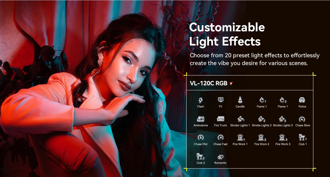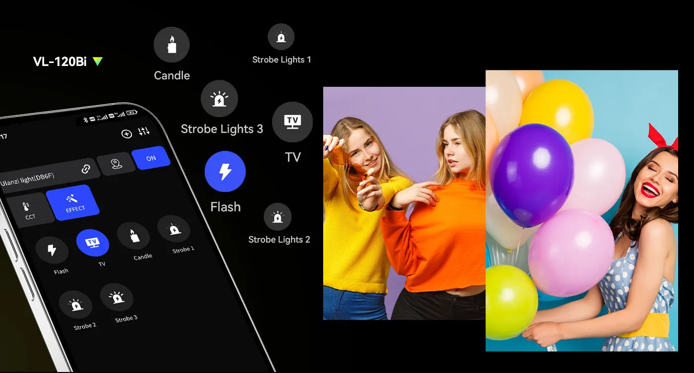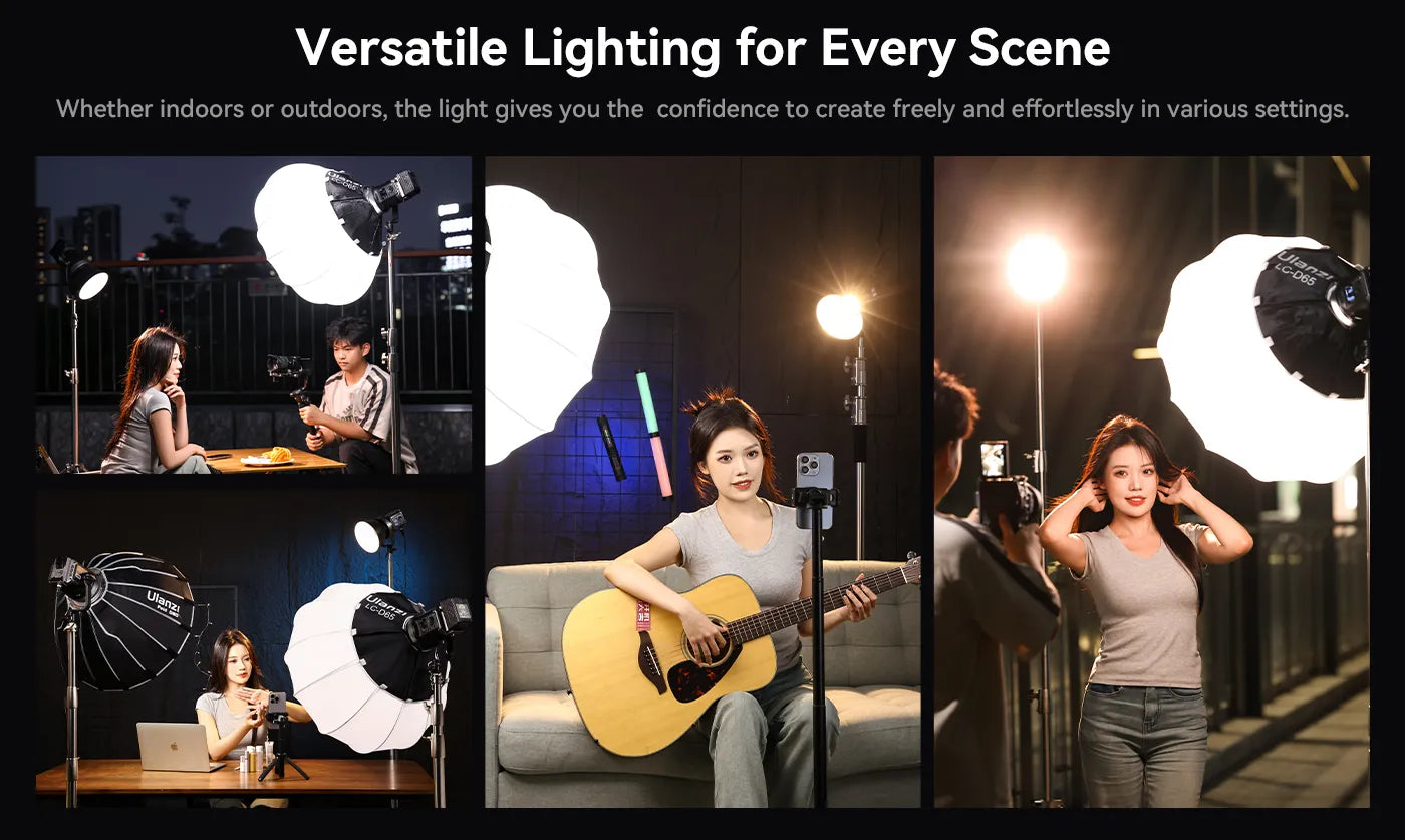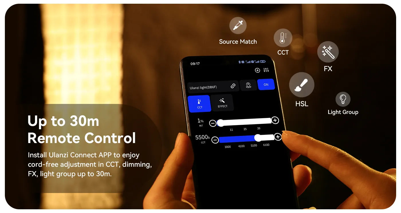 Ovládejte osvětlení až na vzdálenost 30 m pomocí aplikace Ulanzi Connect a přizpůsobte si nastavení jako CCT, stmívání, FX a skupiny světel. Užijte si 20 přednastavených světelných efektů s verzí RGB nebo 6 s verzí Bi-color. Mezi uživatelsky přívětivé funkce patří LCD displej, plynulý ovladač, otočný L-stativ o 360° a kompatibilita s držákem Bowens.