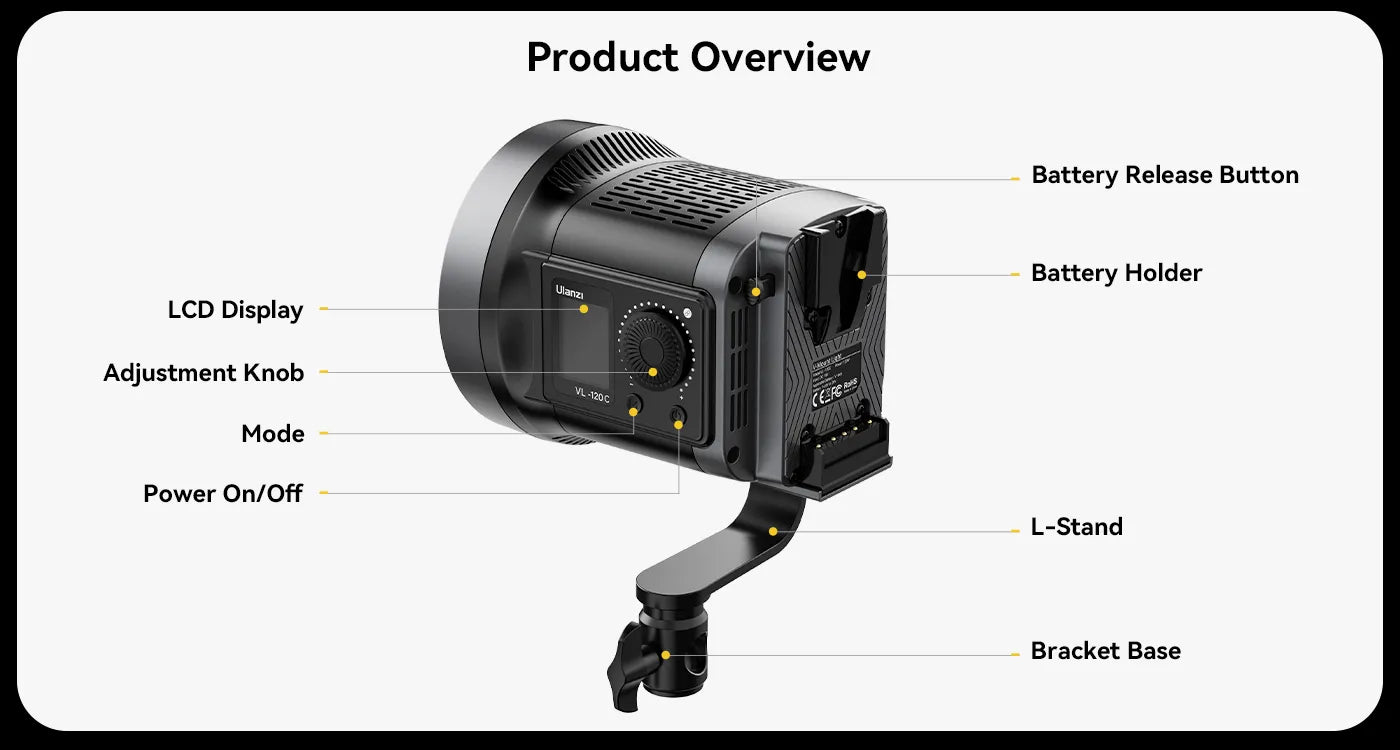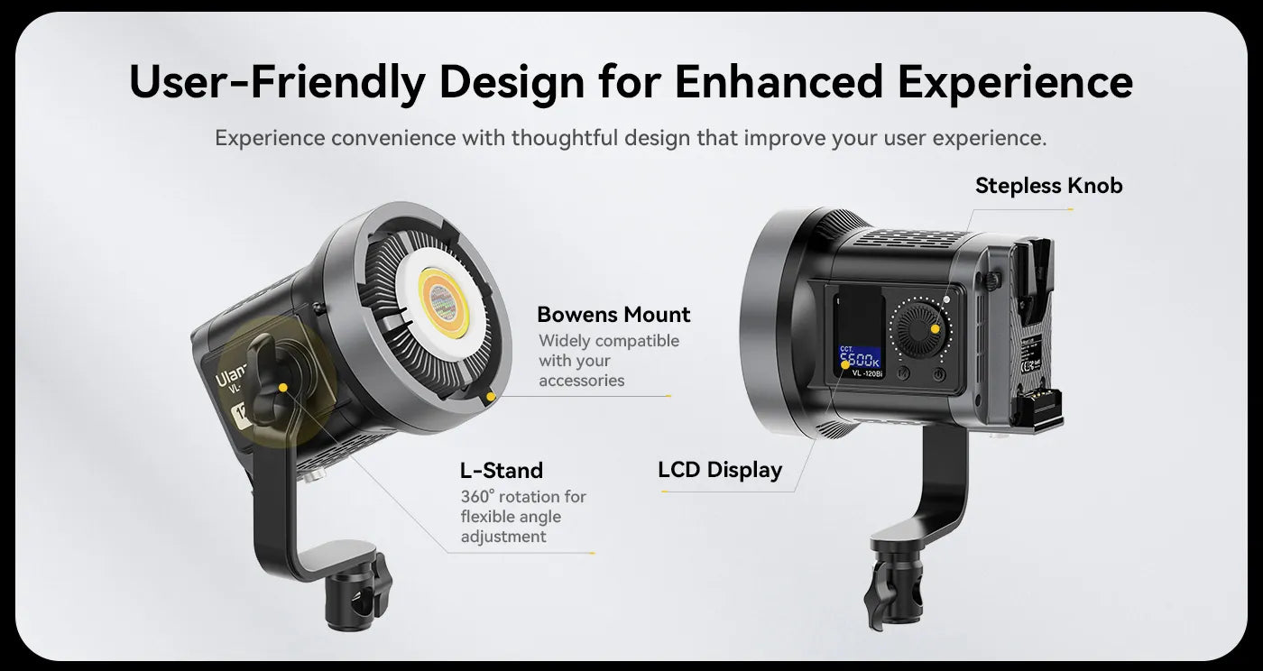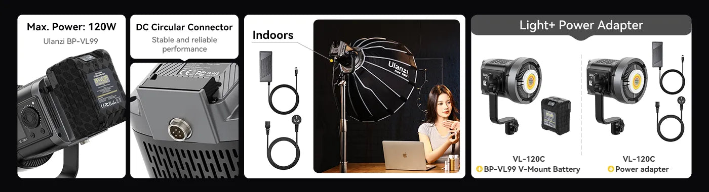 Vylepšete osvětlení svých videí pomocí dvoubarevného / RGB videolampy Ulanzi 120W s V-mountem. Tato univerzální lampa je ideální pro svatební videografie, skeče, živé přenosy v e-commerce a produktovou fotografii. Zajišťuje rovnoměrné, měkké osvětlení díky vysoce účinným COB lampám.