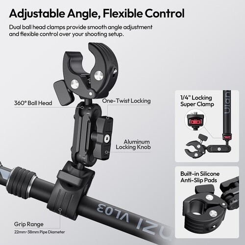 Model VL03 je konstruován s ohledem na odolnost a spolehlivost a je navržen tak, aby pevně držel i při namáhání pohybem a zároveň si zachoval flexibilitu při polohování. Jeho vylepšená prodlužovací tyč pomáhá dosáhnout různých perspektiv, od blízkých záběrů z vlastního pohledu až po široké filmové úhly, což z něj činí univerzální nástroj pro tvůrce obsahu.