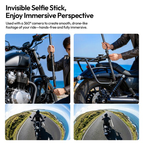 Držák na motorku Ulanzi VL03 pro neviditelnou selfie tyč je profesionální upevňovací řešení určené pro motocyklisty a tvůrce akčních videí, kteří při natáčení dynamických záběrů potřebují maximální stabilitu a univerzálnost. Tento vylepšený systém, navržený speciálně pro motocykly a prostředí s vysokou dynamikou, zajišťuje plynulé a neroztřesené záběry i při vysokých rychlostech.