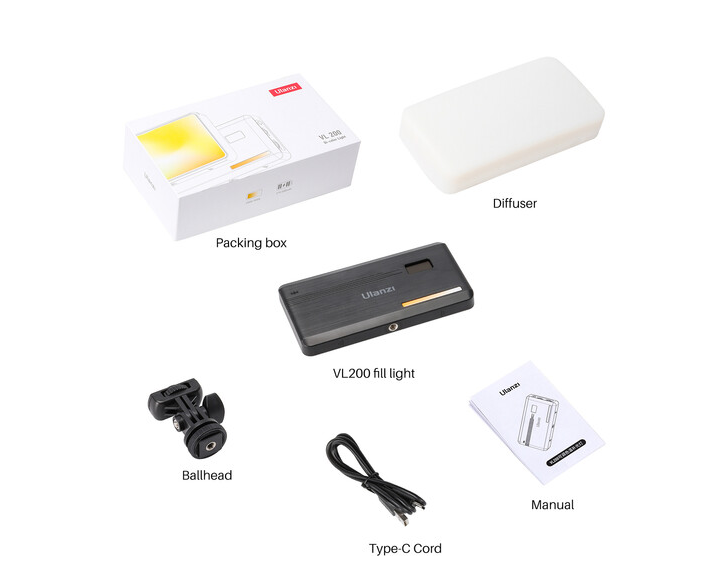 Jas a teplotu barev lze snadno nastavit pomocí vestavěných otočných koleček, přičemž integrovaný LCD displej zobrazuje stav baterie, jas a nastavení barev. Světlo je napájeno vestavěnou baterií s kapacitou 5000 mAh a poskytuje 2 až 15 hodin provozu v závislosti na nastavení. Nabíjí se pohodlně přes USB-C. S CRI 90, pasivním chlazením a možnostmi upevnění 1/4"-20 a cold shoe je VL-200 ideální pro natáčení na cestách, tvorbu obsahu a smíšené osvětlení.