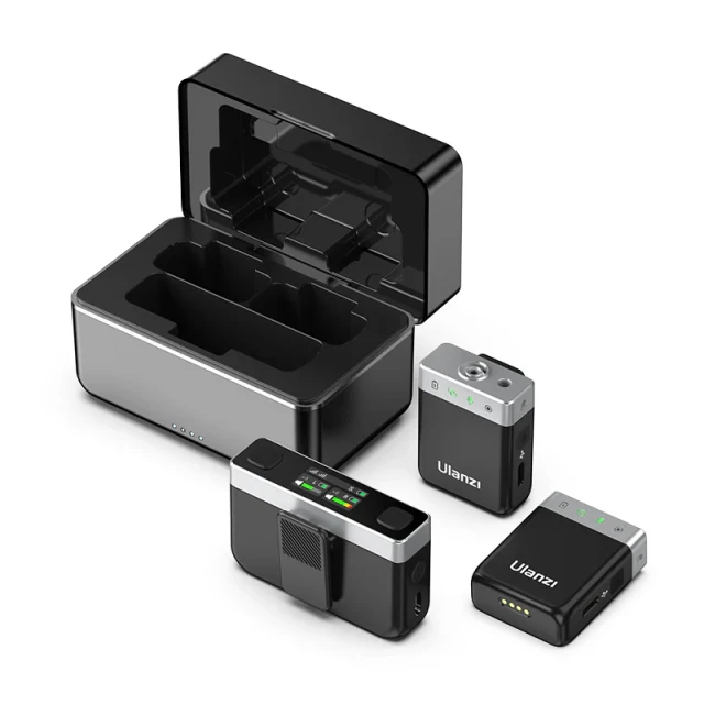Dvoukanálový bezdrátový mikrofonní systém pro simultánní nahrávání dvou zdrojů zvuku. Vestavěná dobíjecí lithium-iontová baterie s nabíjecím pouzdrem – výdrž baterie až 20 hodin. Analogový výstup 3,5 mm TRS, digitální výstup USB-C a iOS – univerzální kompatibilita s fotoaparáty, mobilními zařízeními a počítači. Oba vysílače mají vestavěnou funkci nahrávání s 8 GB paměti pro až 14 hodin záložního nahrávání.