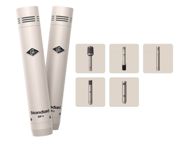 Pár malomembránových kondenzátorových mikrofonů SP-1 s kardioidní směrovou chrakteristikou, presety Apollo Channel Strip pro okamžitý profesionální zvuk a přiloženým příslušenstvím.