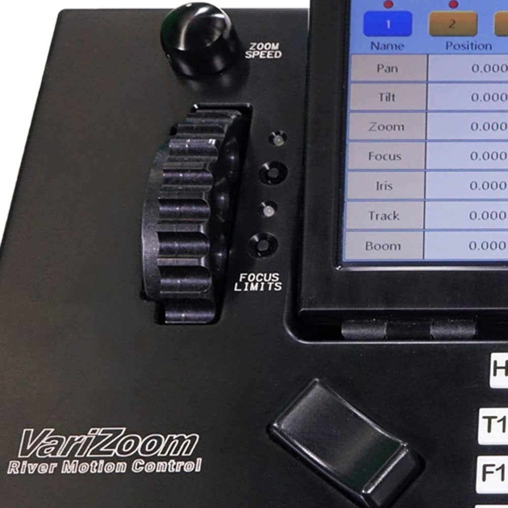 VariZoom River Control Console je 4kamerový 7osý řídicí systém s více hlavami, který umožňuje přesné ovládání os Pan, Tilt, Zoom, Focus, Iris, Track/Dolly a Boom na filmové úrovni. Konzole River je ideální pro firemní videa, sportovní přenosy, koncerty, kostely a živé akce. Spolupracuje s dálkovými hlavami VariZoom CinemaPro, CP Micro a CP JR a poskytuje intuitivní ovládání pomocí dotykové obrazovky pro konfigurace s jedním nebo více operátory.
