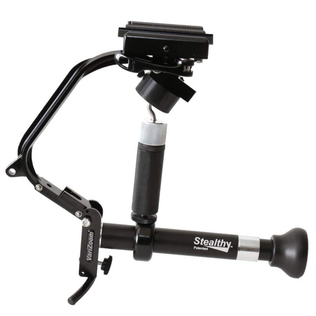 Stabilizátor kamery VariZoom Stealthy Pro vychází z osvědčeného designu původního modelu Stealthy™ a přidává profesionální 6-ložiskový kardanový závěs a výsuvnou rukojeť pro lepší vyvážení, plynulejší pohyb a větší flexibilitu při používání. Stealthy Pro, navržený jako jeden z nejuniverzálnějších ručních stabilizátorů kamer na trhu, umožňuje operátorům rychle přepínat mezi několika režimy natáčení, včetně stabilizátoru, stolního stativu, 3bodového natáčení, ruční podpory, krátkého monopodu nebo dlouhého monopodu (dlouhý monopod se prodává samostatně). Jeho patentovaná konstrukce umožňuje rychlý přechod mezi konfiguracemi, což jej činí ideálním pro natáčení z ruky a spontánní zachycení. Výsuvná rukojeť může být umístěna svisle pro lepší ergonomii, zatímco přesný kardanový závěs poskytuje vynikající stabilizační výkon. Kompaktní a lehký Stealthy Pro je navržen tak, aby se dal pohodlně zavěsit na přiložený klip na opasek, když se nepoužívá, což umožňuje jeho rychlé vytažení a nasazení v okamžiku. Stealthy Pro je vyroben z odolného hliníku a je schopen unést kamery od 8 oz do 3 lbs (až 5 lbs s volitelnou sadou závaží). Je to cenově dostupné, ale profesionální řešení pro amatérské i zkušené filmaře.