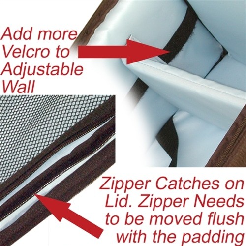 Nastavitelné vnitřní stěny pro oddělení fotoaparátu a příslušenství