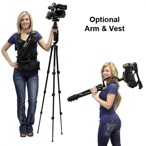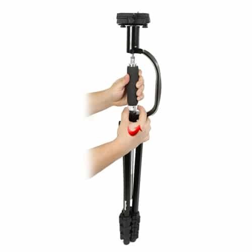 Jeho integrovaný stativ nabízí působivý rozsah výšky od 20″ do 69″, což umožňuje okamžité přechody mezi stabilizovanými pohyblivými záběry a pevnými statickými záběry bez nutnosti výměny vybavení. Patentovaná uzamykací rukojeť a plynulý kardanový systém lze odemknout pro plynulý plovoucí pohyb nebo uzamknout pro stabilní provoz monopodu nebo stativu.