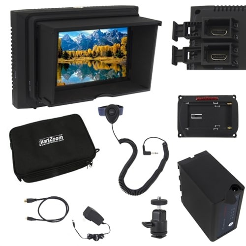 Sada VariZoom VZ-M5 (VZM5K) je kompletní 5palcové řešení pro monitorování HDMI pro profesionální videoprodukce. Tato luxusní sada obsahuje ultraostrý monitor VZM5, skládací sluneční clonu, vysokokapacitní baterii Sony řady L, nabíječku, otočný držák, zámky kabelů HDMI, dálkové tlačítko zoomu pro pomoc při zaostřování, síťový adaptér, dva kabely HDMI a měkké přenosné pouzdro – vše, co je potřeba pro spolehlivé a přesné monitorování na place.