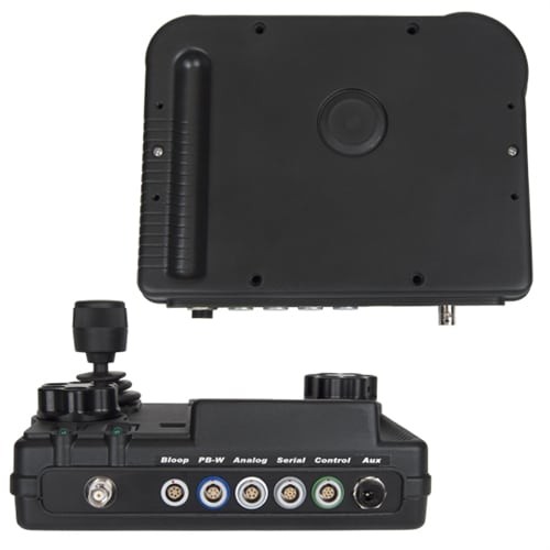 Ovládací konzole s 3osým joystickem, knoflíky pro zaostření/zoom a podsvícenou klávesnicí