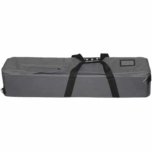Střední rozpěrka zvyšuje tuhost na nerovném terénu, zatímco bezpečné uzamykací knoflíky pro nastavení výšky zajišťují rychlé a spolehlivé nastavení. Měkké gumové nožičky umožňují bezpečné použití na vnitřních i venkovních površích. Pro přepravu a ochranu je součástí balení polstrovaný přepravní kufr.