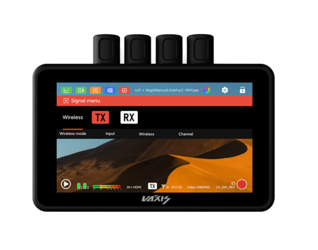 Bezdrátový monitor Vaxis Atom A5 5,5" RX/TX SDI/HDMI kombinuje vysoký jas monitorování na kameře s robustním bezdrátovým přenosem a příjmem videa v lehké jednotce o hmotnosti 360 g, vybavené dotykovým LCD displejem s rozlišením 1920 x 1080, jasem 2000 cd/m² a kontrastem 1200:1 pro jasné zobrazení za denního světla. Podporuje rozlišení až 1080p60 přes vstupy SDI a HDMI s výstupy loop-through, umožňuje nahrávání MP4 proxy přímo na microSD a hladce se integruje do ekosystému Vaxis Atom (kompatibilní se sérií Atom 500/600) pro přenos v přímé viditelnosti až do vzdálenosti 1000'. Mezi další profesionální funkce patří synchronizace časového kódu se spouštěčem záznamu kamery, úložiště pro až 50 3D LUT, komplexní nástroje pro zpracování obrazu (vlnová forma, vektorskop, histogram, peaking), dvě vyměnitelné antény a pevná dvojitá baterie řady L pro delší provozní dobu.